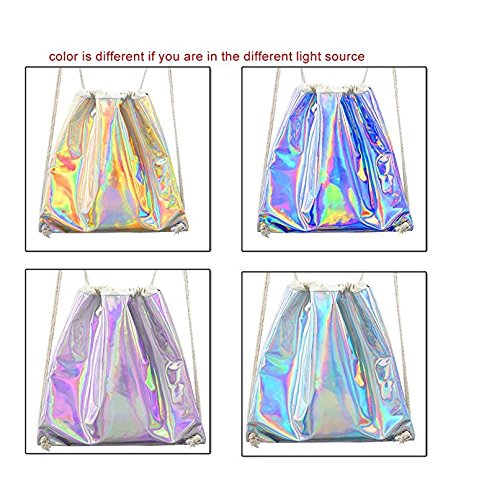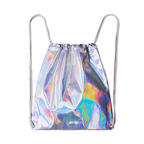Hologram Laser PU Drawstring Backpack School Book Bag Daypack