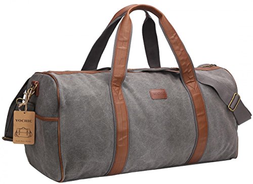 Large Canvas Travel Duffel Bag For Mens Womens Overnight Weekend Bag Khaki