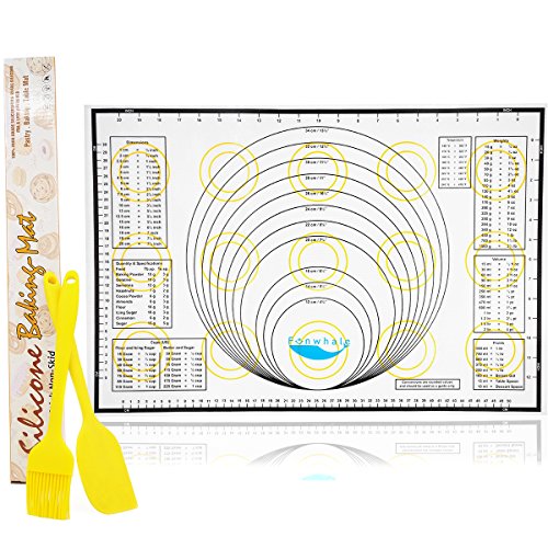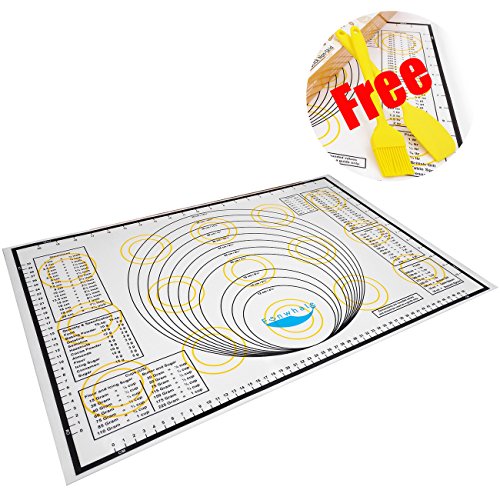 Funwhale Silicone Non Stick Baking Mat with Measurements, Conversions, Silicone Brush and Spatula, Extra Large (23.7-Inch-by-15.7-Inch)