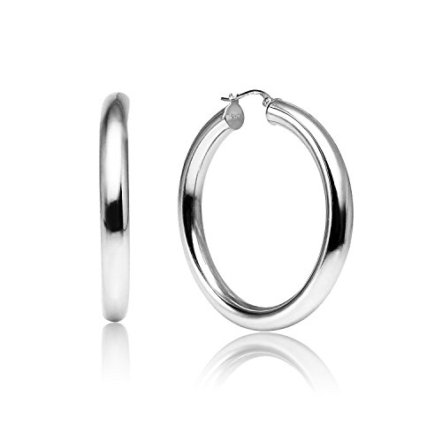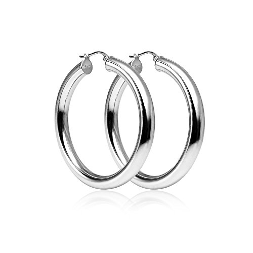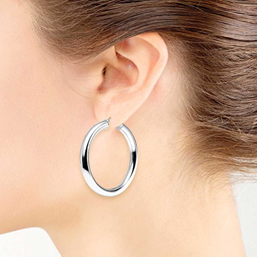 LOVVE Sterling Silver High Polished Round-Tube 5mm Click-Top Hoop Earrings, All Sizes