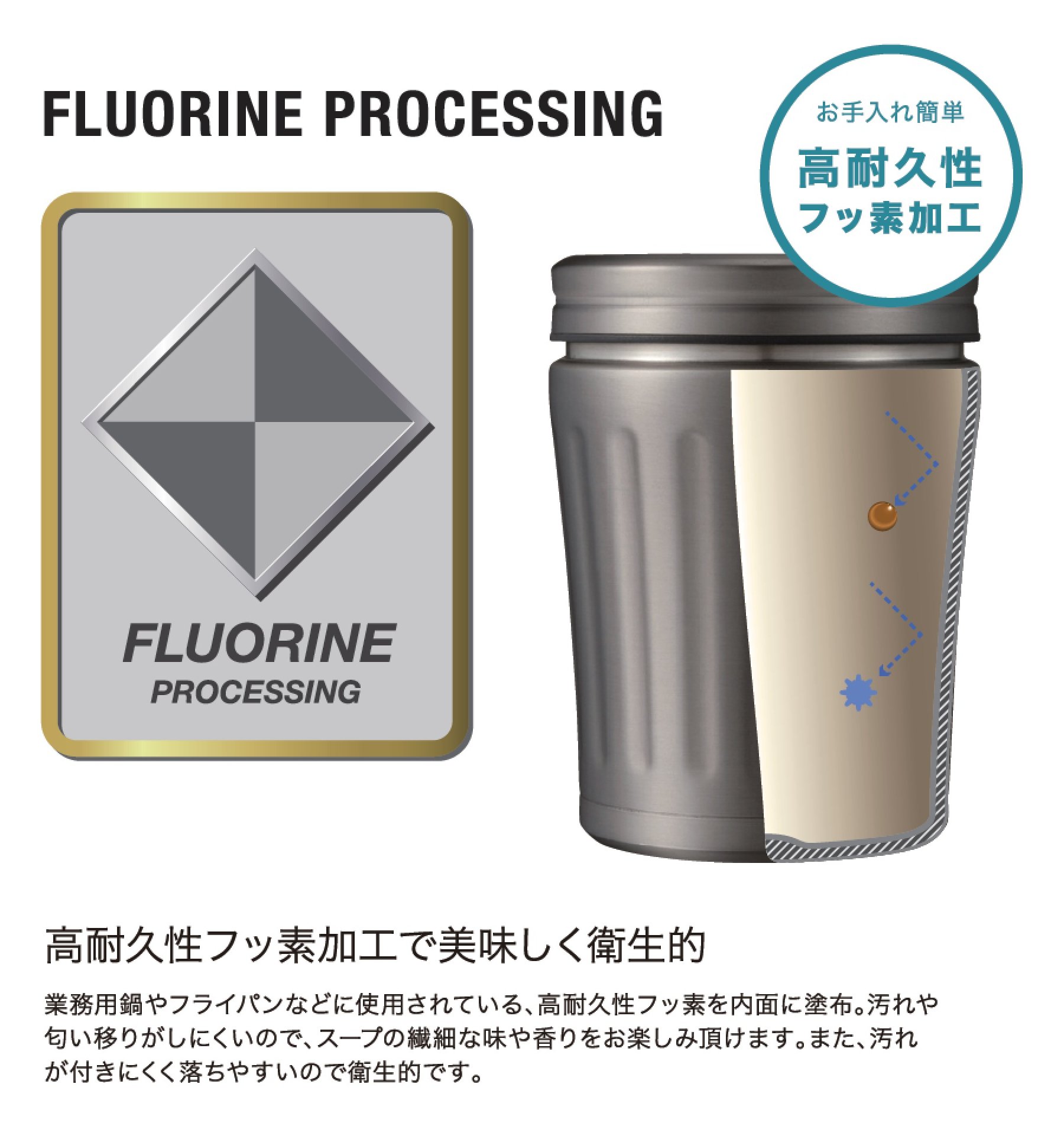 ● Highly durable fluoride used for business pots and frying pan etc. is applied to the inside.