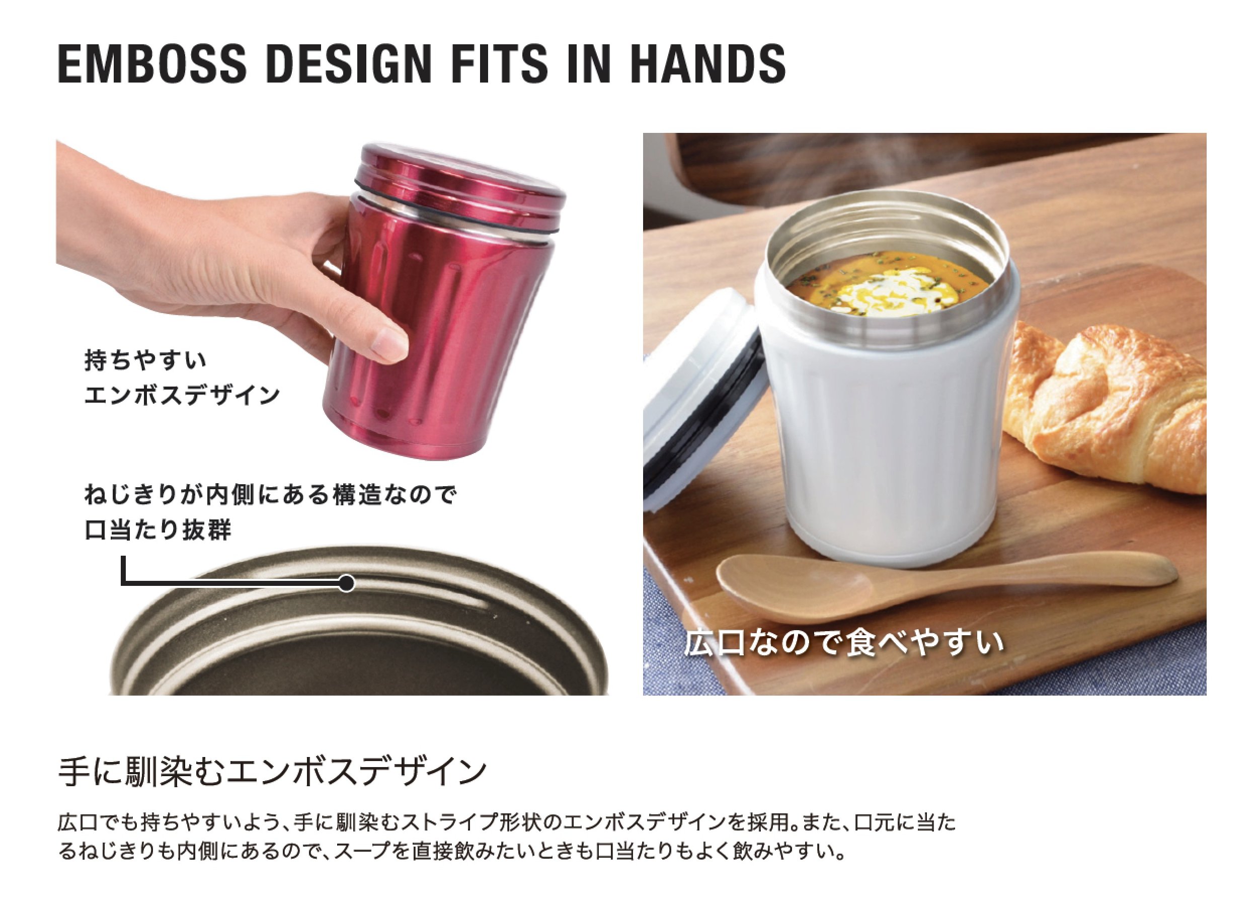 ● Plus soup plus lunch box · Easy to eat because it is wide mouth · Outdoor