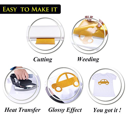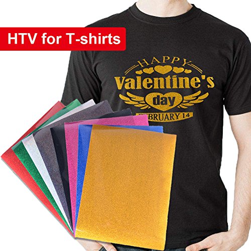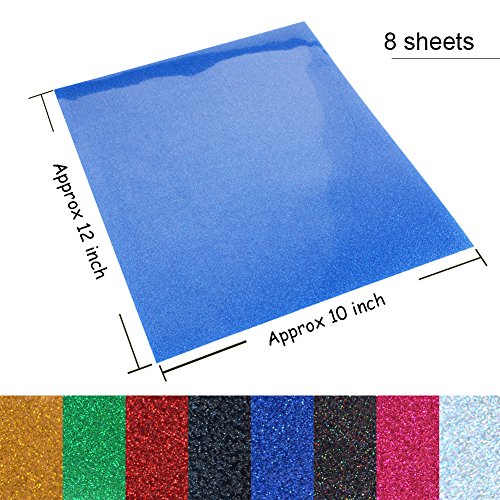 Iron on Glitter Vinyl Sheets Heat Transfer 12"x10" HTV for T-Shirt,Hats,Shoes,Pillows,Bags, 8 Pack, Kenteer