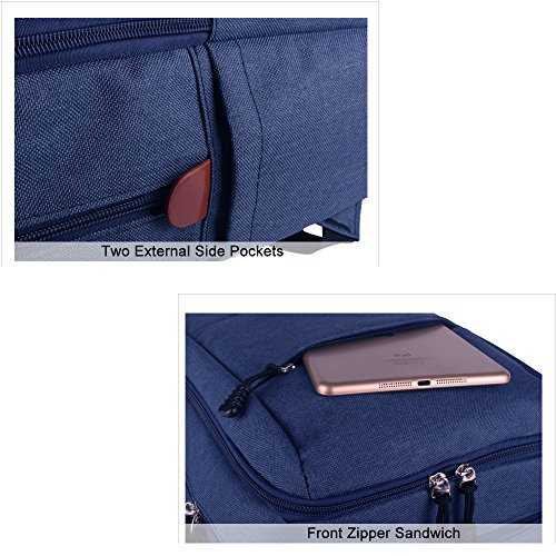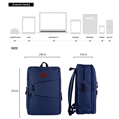 -. Feature : Measurements and Sizes: Exterior: 16" x 11" x5.5" Suitable for most popular 15.6 inches inch MacBooks / laptops / notebooks / Ultrabooks; may not snugly fit all computers due to variations in the sizes of different models. / Large multi-compartment backpack with a padded sleeve for laptops.Holds up to 15.6-inch notebook computer.Vourious pockets are ideal for storage of many small items such as phone, wallet, power adapters, cables,and notepads etc. offering added convenience / Compatible with: Display size up to 15.6-inch like: MacBook, Samsung, HP, Acer, ASUS, Lenove, Dell, Toshiba, Sony and others / Organizer Pocket; Padded Shoulder Straps.Airflow Backing System.Water Bottle Pocket / Airflow Back System: Multi-panel airflow design provides extra padding for comfort and maximum back support.Organizer Pocket: Interior organizer provides divider pockets for pens, pencils, cell phone and CD's