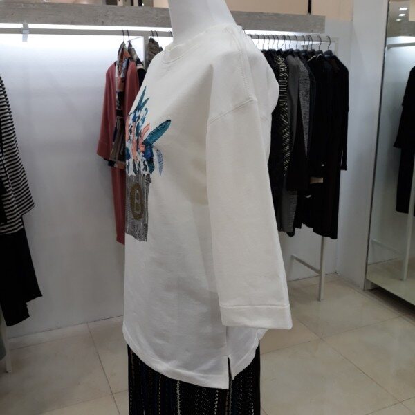 프린트 기본 티셔츠면 소재의 7부 프린트 티셔츠입니다.몸에 붙지 않아,편안하게 입기 좋은 티셔츠입니다.힘있는 소재로 물세탁해도흐물거리지 않아 자주 입기 좋은 티셔츠입니다.앞면 프린트로 포인트를 주어데일리룩으로 입기 좋습니다.온라인 단독 상품