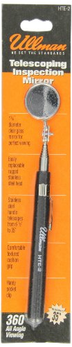 Ullman HTE-2 Glass High-Tech Telescoping Inspection Mirror, 1-1/4" Diameter, 6-1/2" to 35" Extended Handle Length, Clear