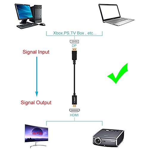High BandWidth: DisplayPort 1.2 to HDTV cable Supporting 4Kx2K UHD TV, TV, monitor or projector with HDMI input.