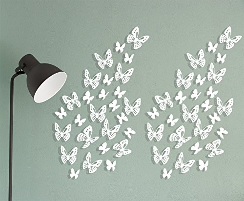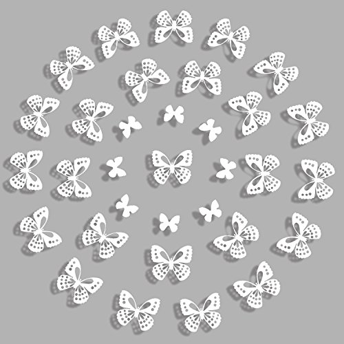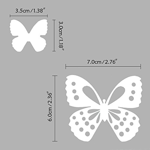 - Unique 3D Design: Approx 100Pcs 3D paper wall butterflies.50Pcs Large Butterflies: 7x6cm(2.76x2.36''), 50Pcs Small Butterflies: 3.5x3cm(1.38x1.18''). Beautiful hollow-out butterfly decals and two different sizes to make the decoration effect more attractive and elegant.