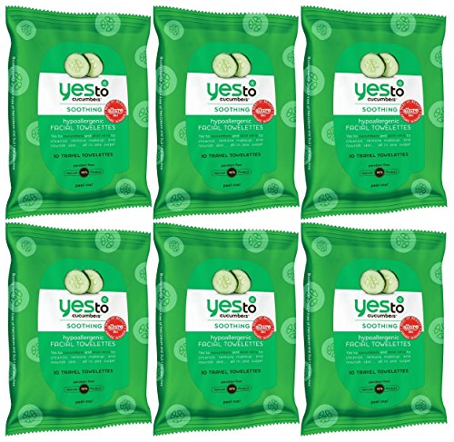 Yes To Cucumber Hypoallergenic Facial Towelettes, 10 Count (Pack of 6) Total 60 Towelettes