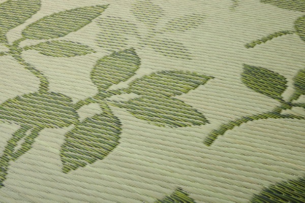 本商品はお取り寄せ商品のため、稀にご注文入れ違い等により欠品・遅延となる場合がございます。誠に恐れ入りますが、何卒ご了承ください。 また、以下の場合には追加送料がかかる場合がございます。  ・沖縄、離島および一部地域への配送時 ・同梱区分が異なる商品の複数購入時  【出荷目安】:2 - 4営業日 ※土日・祝除く 【同梱区分】:TS 1678 【梱包サイズ】:通常商品   リーフ柄をデザインしたシンプルでカジュアルない草ラグです。裏面には滑りにくい加工をした不織布を使用しているため、フローリングにも最適です。い草には空気の自然浄化作用、湿度の調節作用などがあります。い草に青森ヒバ加工を施しています。(抗菌、防臭効果)  【素材】表地=い草 ※普通織 裏地=ポリエステル100%【不織布】※滑りにくい加工 ヘリ=ポリエステル100% 【サイズ】約176×230cm 【原産国】中国製 【洗濯表示】洗えません。 【適応サイズ】2.6畳  【配送日時指定について】 ・この商品は、配送希望日と時間帯をご指定可能です。 ・配送希望日は出荷目安(最長)の 2 - 30 日後の間でご指定ください。 ・最短でのお届けをご希望の場合は「指定なし」を選択してください。 ※配送エリア(例:沖縄・離島)により、配送希望日のご指定をお受けしかねる場合がございます。