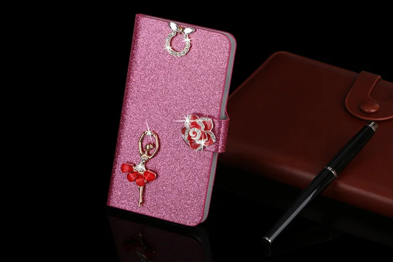Luxury Fashion Case:Fashion Women Girl Bling Diamond Glitter PU Leather Flip Phone Case