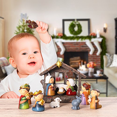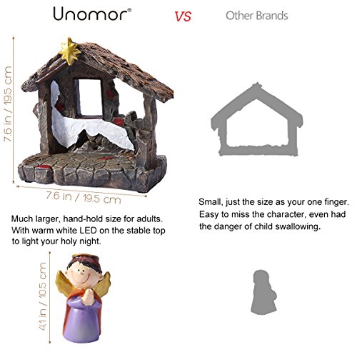 - • Bigger than other miniature nativity set, Includes Stable, about 8.6 X 7 X 3.5 inches