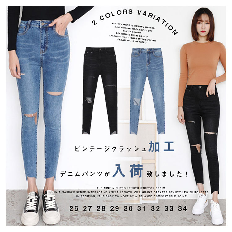 | ビンテージクラッシュ加工デニムパンツが入荷致しました!大人気の9分丈ストレッチデニム。足首を細く魅せる丈感で美脚シルエットを叶えます!!さらに動きやすく、リラックスな履き心地もPOINT◎ALLシーズン使えるから何枚持っていても困らない♪ | |
