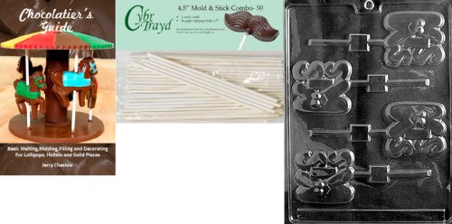 Cybrtrayd 'Kiss Lolly' Valentine Chocolate Candy Mold with 50 4.5-Inch Lollipop Sticks and Chocolatier's Guide