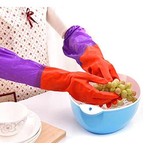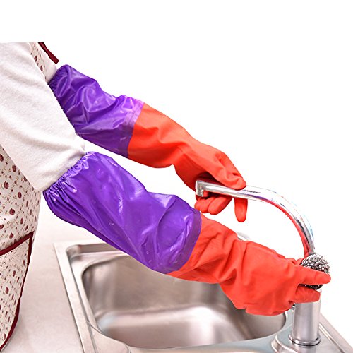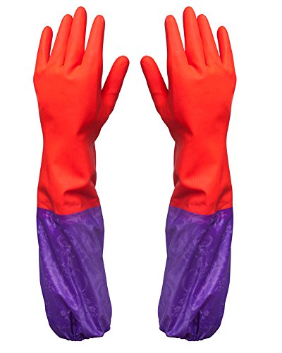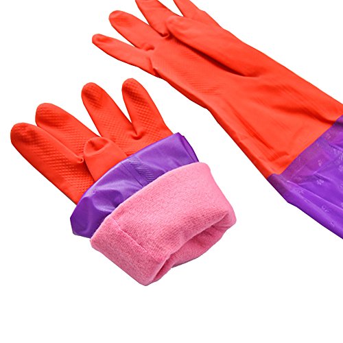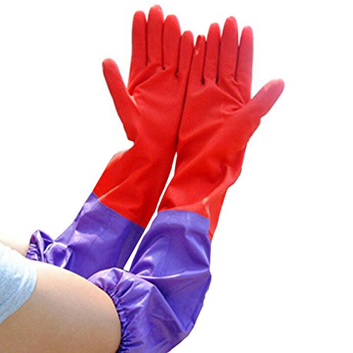 Bestartstore 50cm / 19.7" Extra-long Latex Rubber Gloves with Velvet Lining Waterproof Household Laundry Dish Cleaning Washing Gloves