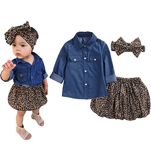 -. Feature : Material: Cotton,Denim / Long sleeve Denim Shirt,Leopard Skirt,Headband / Suitable for ages 1-5 Years girls / Occasion: Playing;Casual Wearing;Photo Outfit;Family Party;Birthday;Daily / 3PC Baby Girls Cowboy shirt + Leopard skirt + Headband