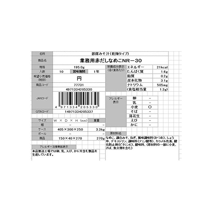 원본상품명: アマノフ?ズ 業務用 赤だしなめこ NR30