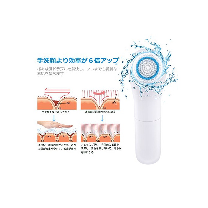 【음파 세안 효과 업】수세안은 피부의 표면의 얼룩밖에(만) 잡을 수 없고, 안쪽에는 닿지 않기 때문에 아무리 해도 화장품의 잔류물이나 피지 등이 완전히 세정 할 수 없습니다. 그것들이 장시간 쌓으면 트러블의 원인 이웃,검은 얼룩,여드름 등이 피부나 얼굴에 나온등 몹시(큰 일).이 전동식 세안 브러시는 초음파 액티브한 기술을 채용하고, 1 초약300회의 음파 진동에 의해브러시가 피부의 안쪽까지 닿아 메이크,피지나 모공의 얼룩을 깨끗함으로 청소 해 줍니다.수동 보다 세정 효과가 6배 업!세안 후의 촉감이《규》로서 반들반들 입니다.장시간 사용하는 것을 계속하면,여드름,검은 얼룩 등의 예방으로도 효과가 있습니다.