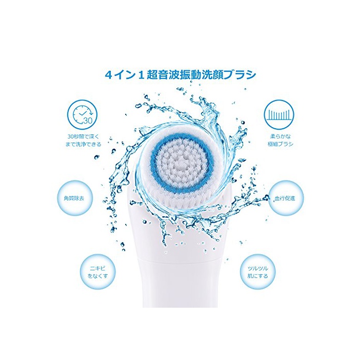 원본상품명: 洗顔ブラシ NexGadget 超音波振動 電動 洗顔器 ボディブラシ 4イン1 IPX7防水型美顔用 毛穴ケア フェスケア ケス付き 電池式 ホワイト【一年間安心保】