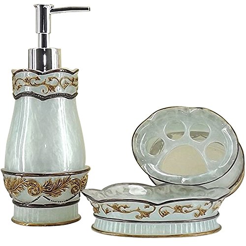 5 Pieces Bathroom Accessory Set With Shabby Chic Green With Jacquard Ensemble,Resin Sanitary Ware,Home Decor,Bath Ideas,Home Gift
