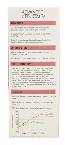 Advanced Clinicals Crepey Skin Wrinkle Smoothing Cream with Collagen, Shea Butter, and Hyaluronic Acid. Large 4oz bottle with pump.