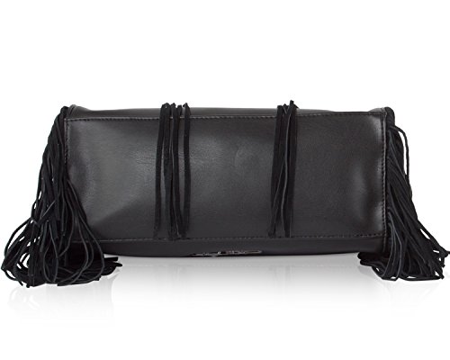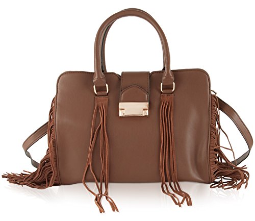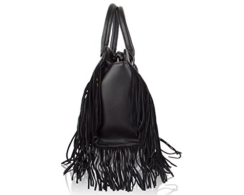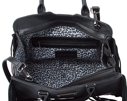 Bring your look full-circle with the beautifully detailed Steve Madden Bkollete Fringe Satchel, Features a faux leather exterior with faux suede Fringe details, wear-everywhere shape with removable shoulder strap Zipper closure with spacious interior.