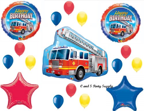 -. Title : FIRETRUCK Engine Happy Birthday PARTY Balloons Decorations Supplies Fire fighter by Anagram