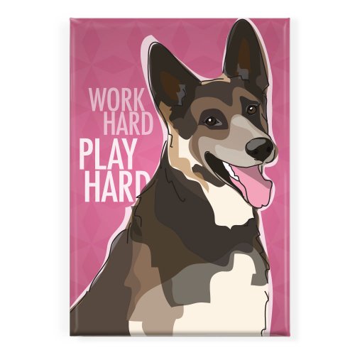 Pop Doggie Work Hard Play Hard German Shepherd Fridge Magnet