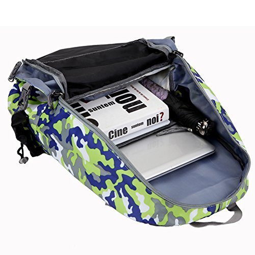 -. Feature : Survival whistle buckle design on the chest belt / 1 main compartment with 1 laptop sleeve + 3 front zipper pockets + 2 side pockets / Thickened mesh design for back panel, shoulder straps and waist belt, comfortable and breathable / Material: waterproof nylon, durable and lightweight / Size: 13.8" L * 8.7" W * 21.7" H, 50L, suitable for light backpacking trips