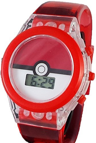 This is a cute girls watch with a Pokeball across the entire face. The band is a clear red, The best feature of this watch is the entire face will light up for 10 seconds when you press the right corner button. The band also adjusts from 6-8 inches with 9 holes to fit your child just right.Feature