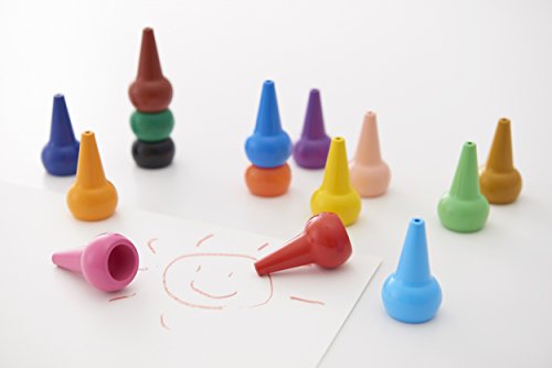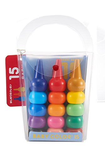 ペンが持てない年齢から使えるクレヨンです。永年の研究から開発された独特の形と、折れにくく、汚れにくい形が特長のクレヨンです。なめても安全な素材を使用。信頼のAPマークを取得しています。衣服についても洗濯で落とせます。クレヨン自体も水洗いできます。中は空洞で先端にも穴がありますので、積み重ね遊びもできますし、万一飲み込んでも空気が通ります。ケースは少し大き目サイズ作ってあり、おかたずけの練習も楽しくできます。基本色の15色セットです。