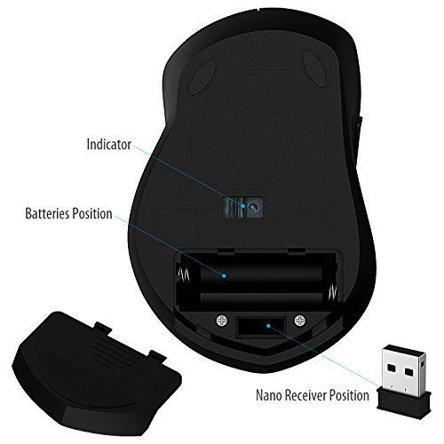 6-month battery life on 2 AAA battery (battery NOT included) practically eliminates the need to replace battery. Battery life may vary based on user and computing conditions. Package includes: 1x JETech® 2.4Ghz Wireless Optcal Mouse, instruction manual