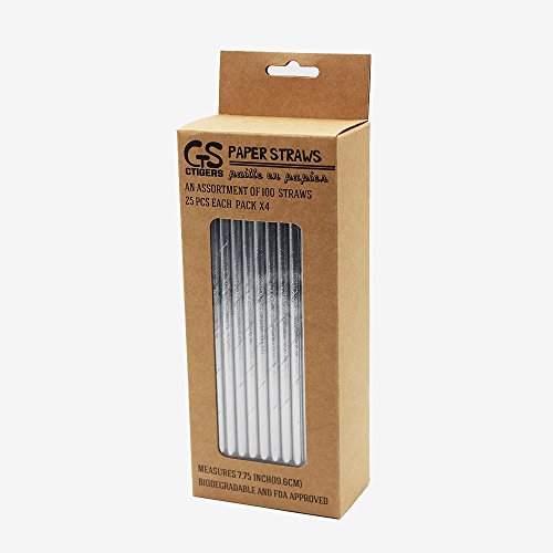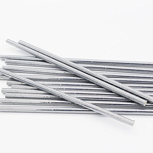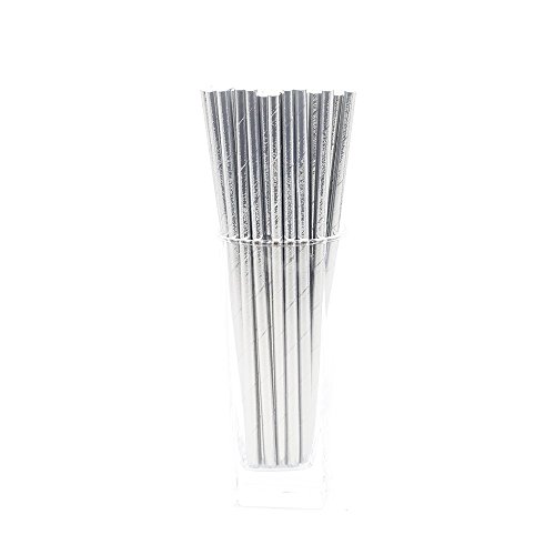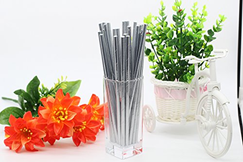 Metallic Silver Drinking Paper Straws for Valentine's Day Wedding Party Biodegradable Straw Box of 100