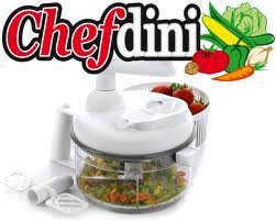 The ChefDini manual food processor performs over 30 functions to help cut your cooking time in half! This compact and durable machine contains commercial grade surgical stainless steel blades, creating the Triple Unified Processing System, which can slice, dice, julienne, mix, blend, whip and much more! Instruction and recipe book included. There are over 45 recipes. The recipe book is broken into categories: Appetizers, Salsas and Dips; Soups, Salads and Sauces; Entrees; Purees; Desserts, Drinks, Smoothies and ShakesFeature