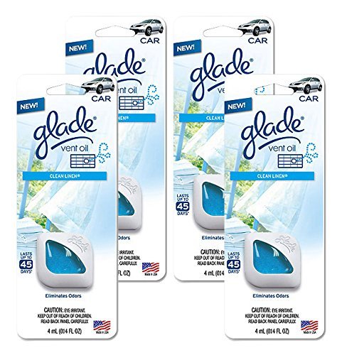 Glade Vent Oil Car AC and Home Air Freshener, Eliminate Odors, Clean Linen Scent (Pack of 4)