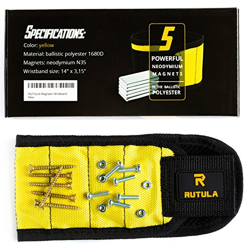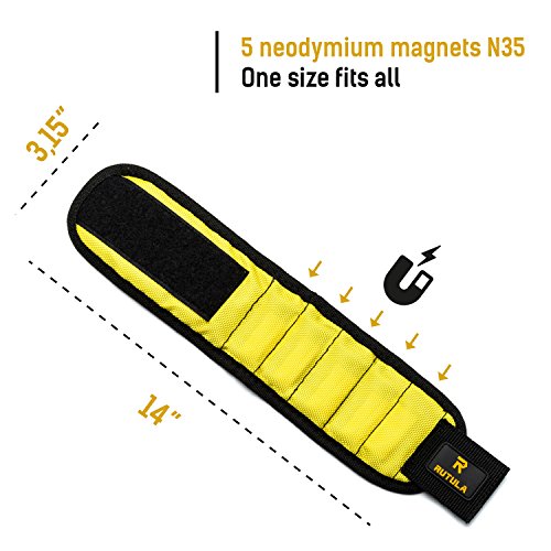 RUTULA magnetic wristband, Band tool holder with 5 magnets, 3rd helping hand, Gift for him: men, husband, father/dad, boyfriend, handyman, guys etc.