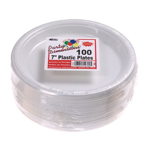 Party Dimensions 100 Count Plastic Plate, 7-Inch, White, Club Pack