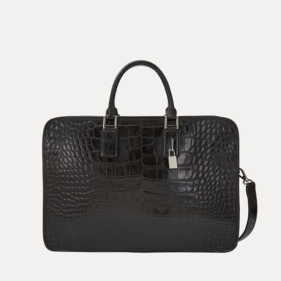 - 다소 무난할 수 있는 브리프 케이스에 자물쇠 장식으로 포인트를 더함.