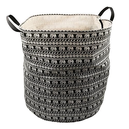 Amerzam 18.5" x 16.9" Large Sized Folding Cylindric Waterproof Coating Canvas Fabric Laundry Hamper Storage Basket (Black Elephant)