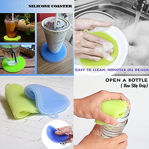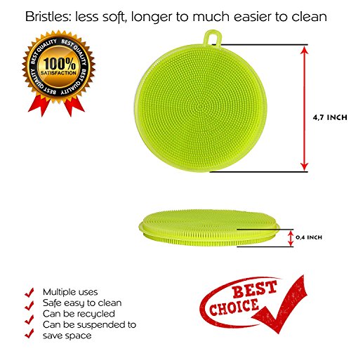 - ✔ EFFORTLESS CLEANING: We have better silicone bristles that is less soft and much easier to clean. Just simply hand-wash or put it in the dishwasher, but if you can wash by hand much better, so it will enhance the lifespan of the rubber dishing sponges. With a hanging hole in the scrubber so you can easily hang and dries faster than any ordinary dishwashing sponge.
