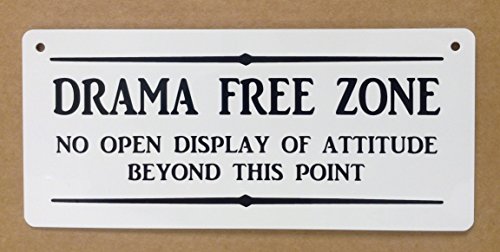 Drama free zone no open display of attitude beyond this point - aluminum sign