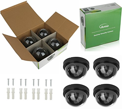 (4 Pack) Fake Dummy Security CCTV Dome Camera With Realistic Look Recording Flashing Red LED Light Indoor And Outdoor Use, For Homes & Business- By Armo