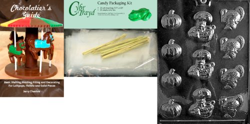 Cybrtrayd Thanksgiving Assortment Chocolate Mold with Chocolatier's Bundle, Includes 25 Cello Bags, 25 Gold Twist Ties and Chocolatier's Guide