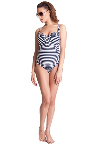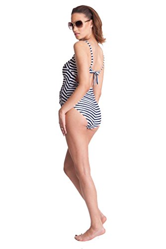 Seraphine's nautical striped one piece maternity swimsuit is perfect for a babymoon! The nautical stripes are designed to flatter your changing figure, and are arranged in clever panels to optically slim and contour your curves. A feminine sweetheart shape boosts your bust and a low scooped back makes for a flirty rear view! Supportive straps and a bra clasp at the back will ensure that you feel 100% secure and sexy splashing about at the beach or lazing by the pool! 80% Polyamide, 20% Elastane Hand wash/Line DryFeature