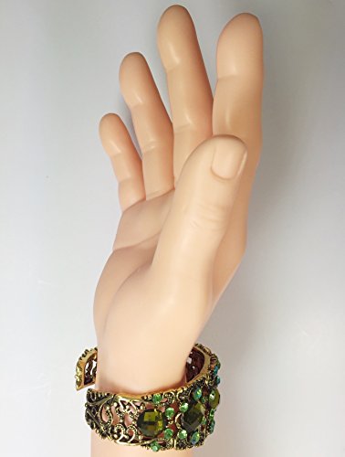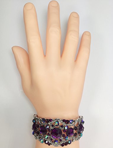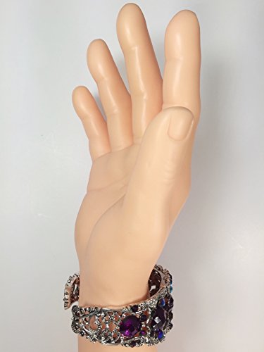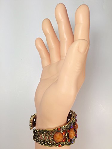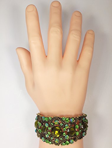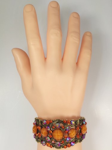 -. Title : Stunning Statement Resin Stone and Rhinestone Open Filigree Cuff Bangle Bracelet - Assorted Colors