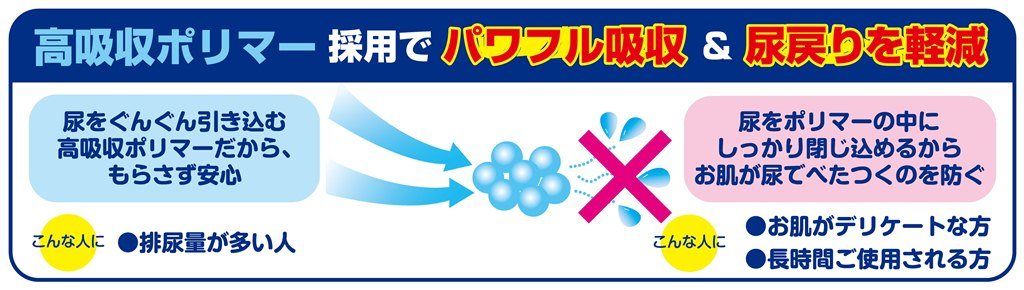 ● For people with a large urination volume: Because it is a high absorption polymer that draws urine, it is safe