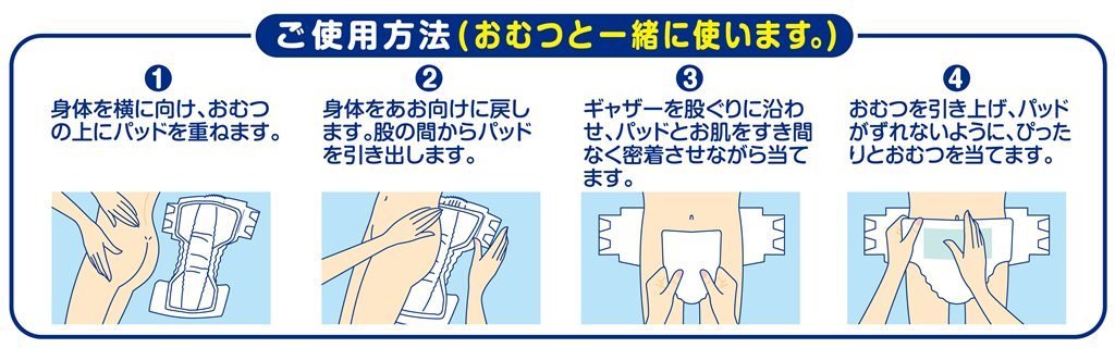 【1】 Position the pad on the diaper with the body facing sideways.