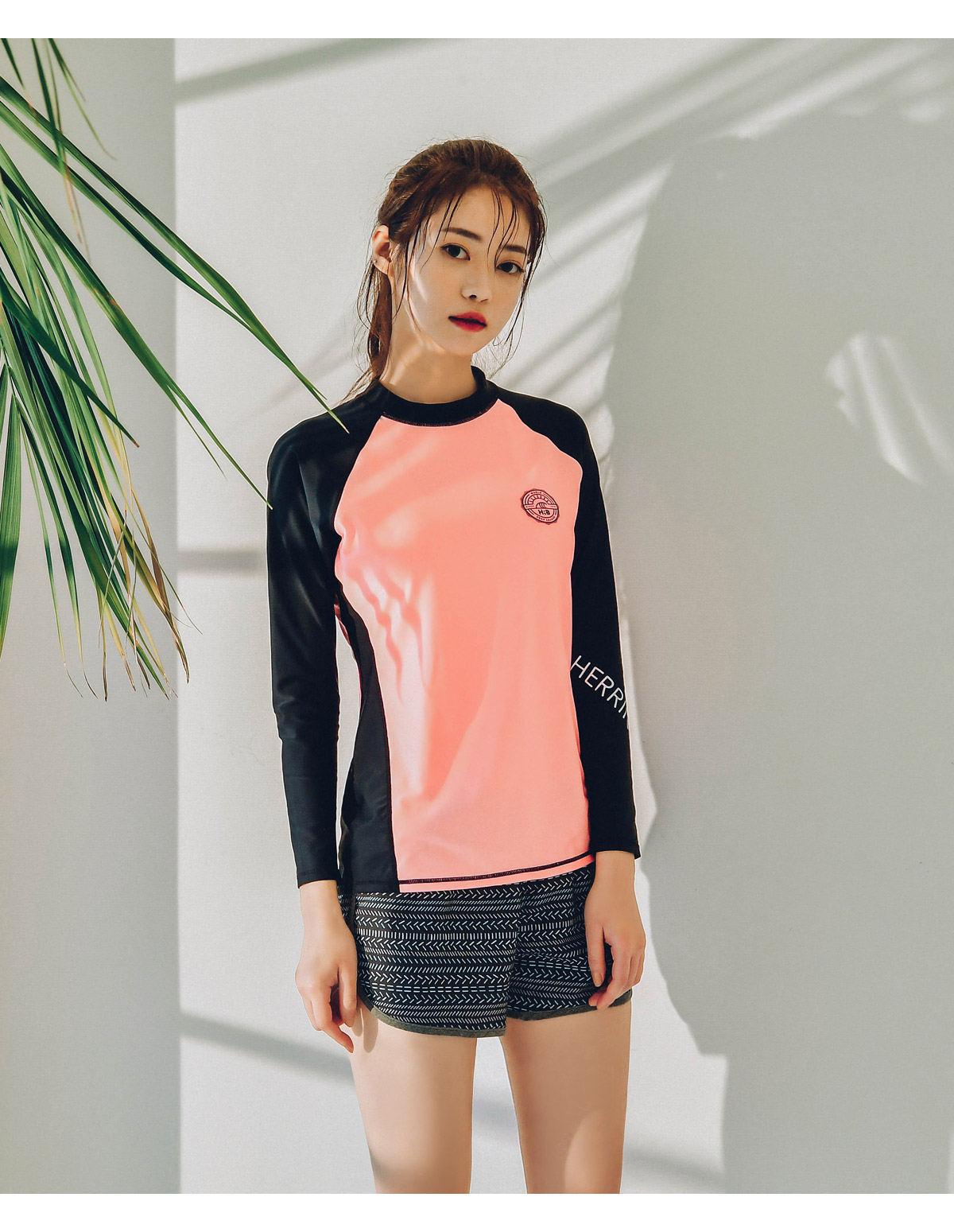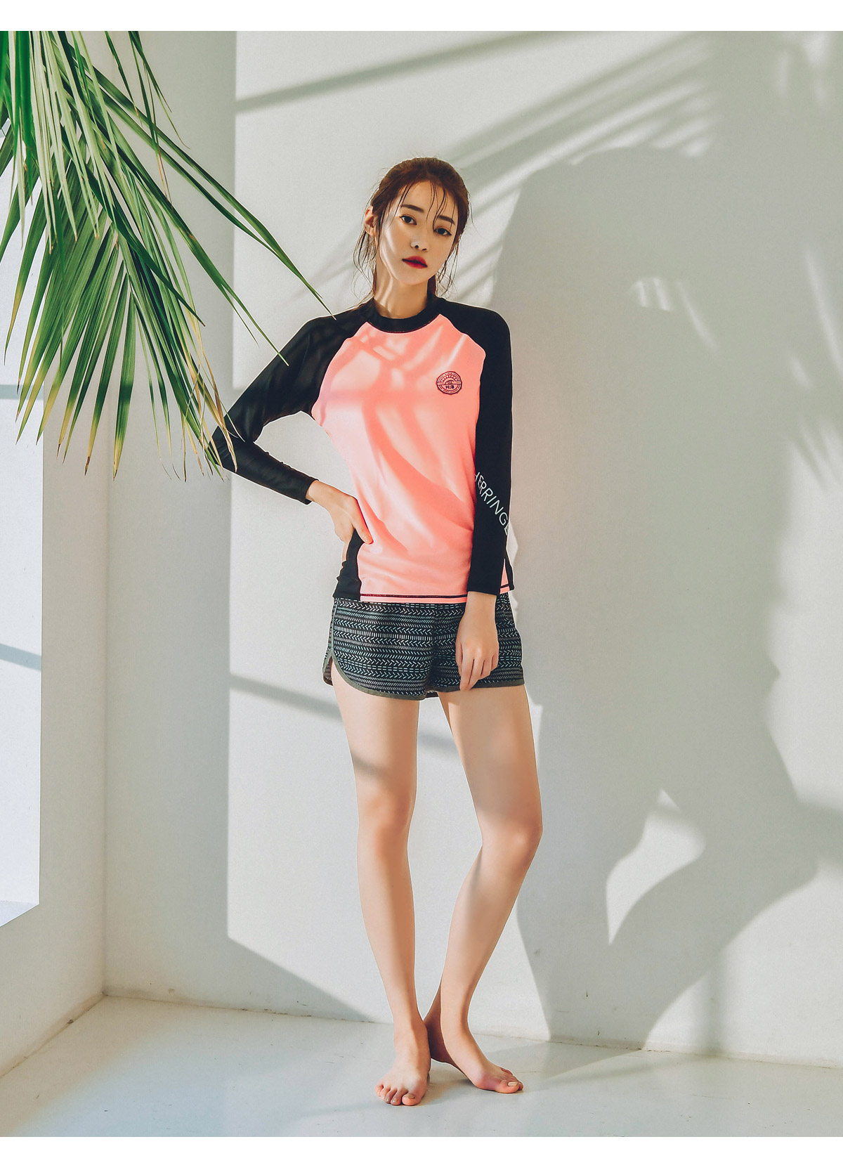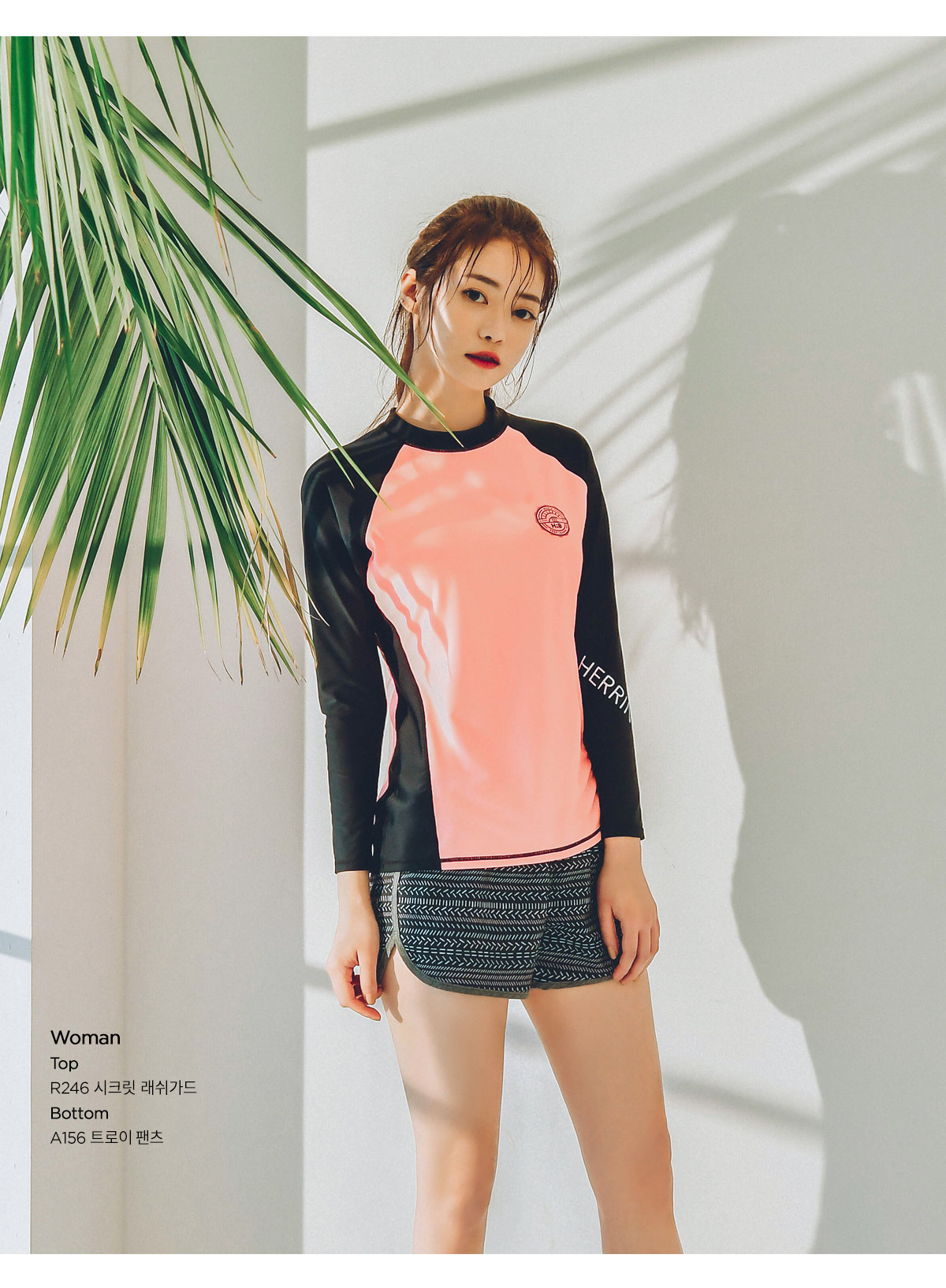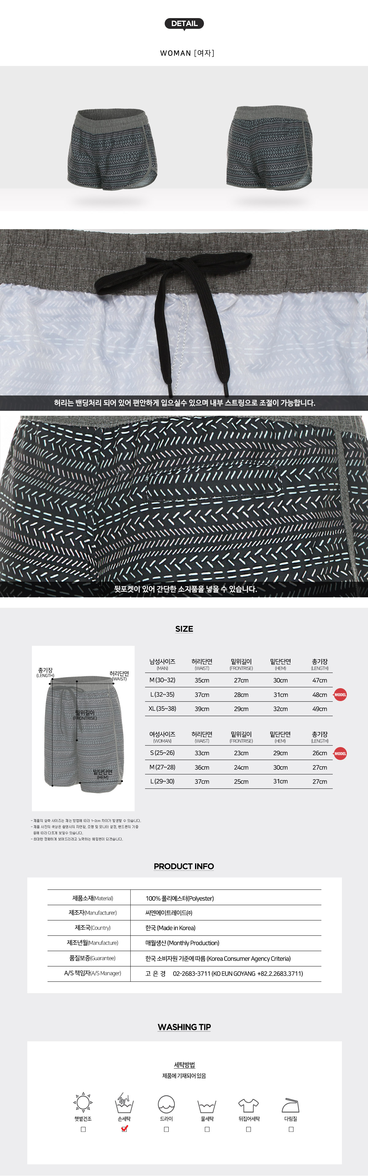 허리 밴딩과 옆 라인에 배색 원단이 포인트로 들어가 있어 멋스럽습니다.