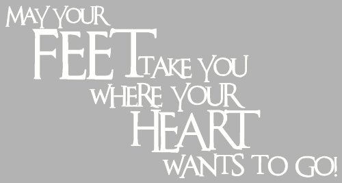 -. Title : Wall Décor Plus More WDPM1316 May Your Feet Take You Where Your Heart Wants To Go Wall Vinyl Sticker Quote, 23-Inch W by 12-Inch H, White