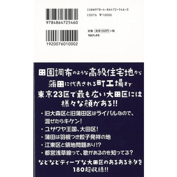 【商品説明】 定価(税込み):1,080円 値引き:10% OFF 給食メニューの定番「あげパン」は大田区が発祥! 田園調布のような高級住宅地から蒲田に代表される町工場まで、東京23区で最も広い大田区には様々な顔がある!!・旧大森区と旧蒲田区はライバルなので、混ぜたらキケン! ・ユザワヤ王国、大田区! ・蒲田は羽根つき餃子発祥の地・江東区と領地問題あり!?・都営浅草線って、歌があるのを知ってる?などなど...ディープな大田区のあるあるネタを180超収録!! バーゲンブック 新品 特価 格安 地図 ガイド 目的別ガイド タウンガイド パン 歌 給食 東京 | |